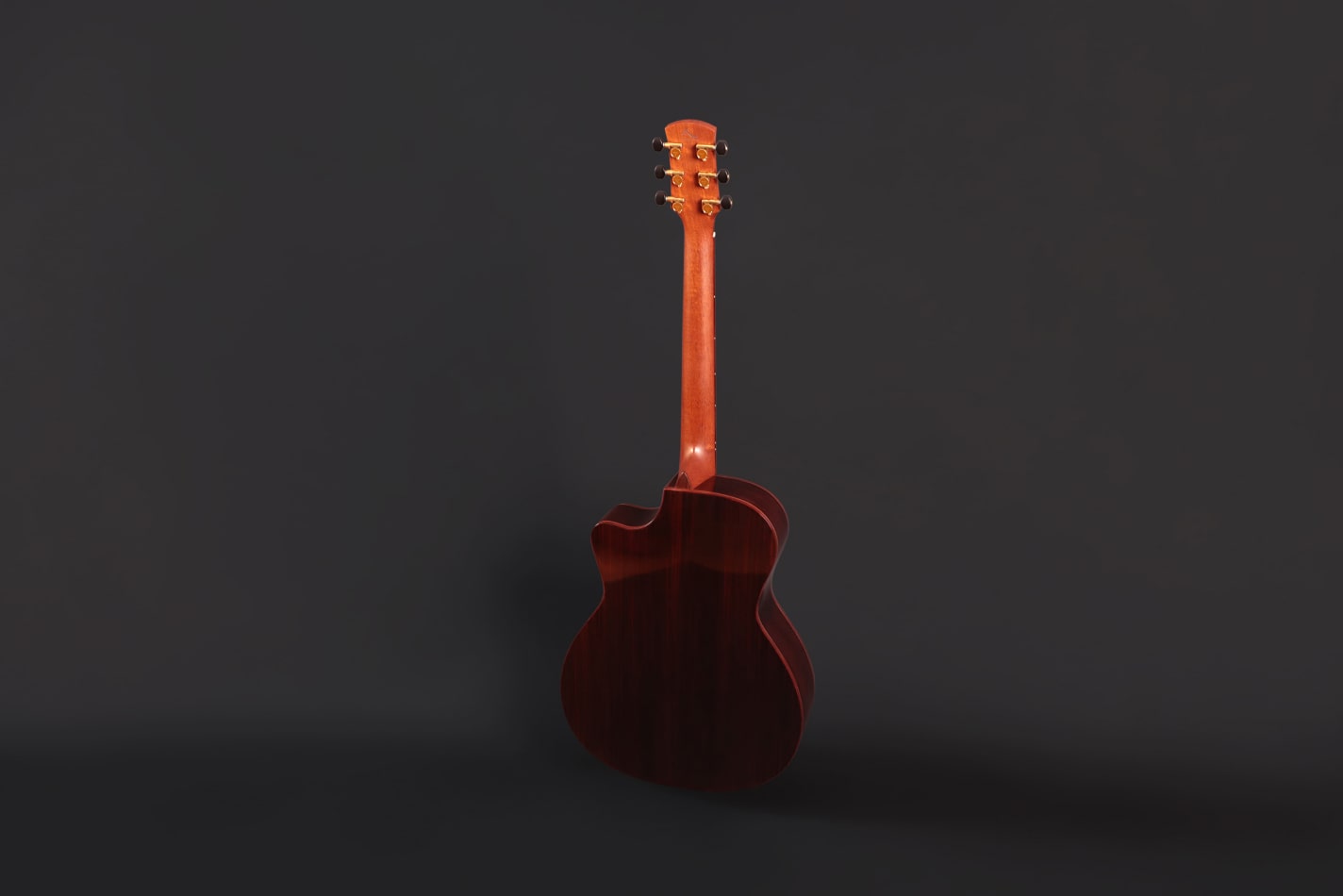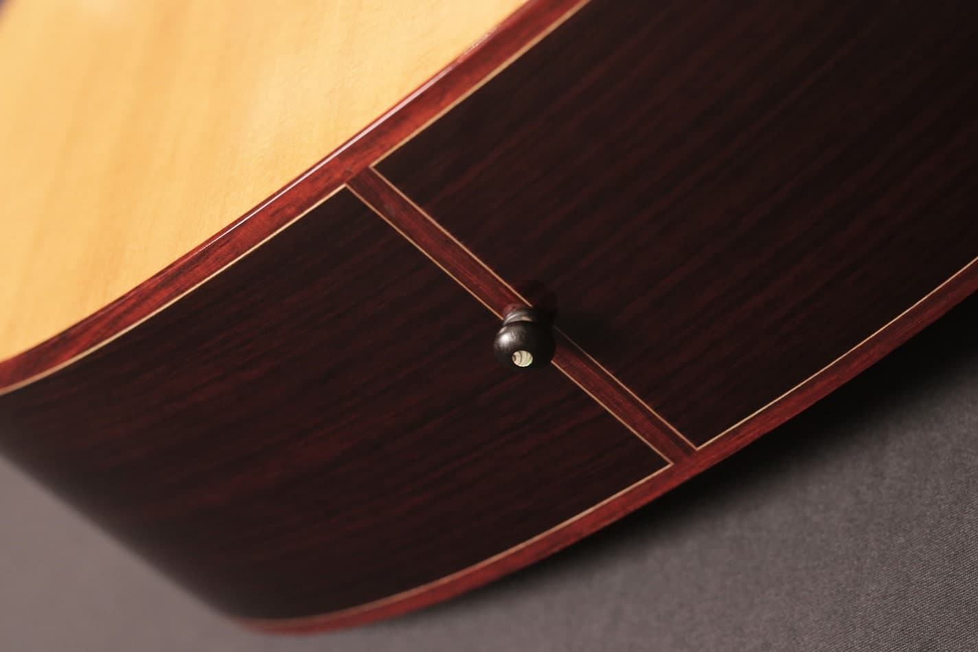 採用西提卡雲杉面板與印度玫瑰木側背板,溫潤木紋展現旗艦級質感,經典搭配帶來細膩層次與深邃光澤。 音色渾厚均衡,印度玫瑰木增添深沉共鳴與豐富泛音,聲音飽滿凝聚,層次細膩。