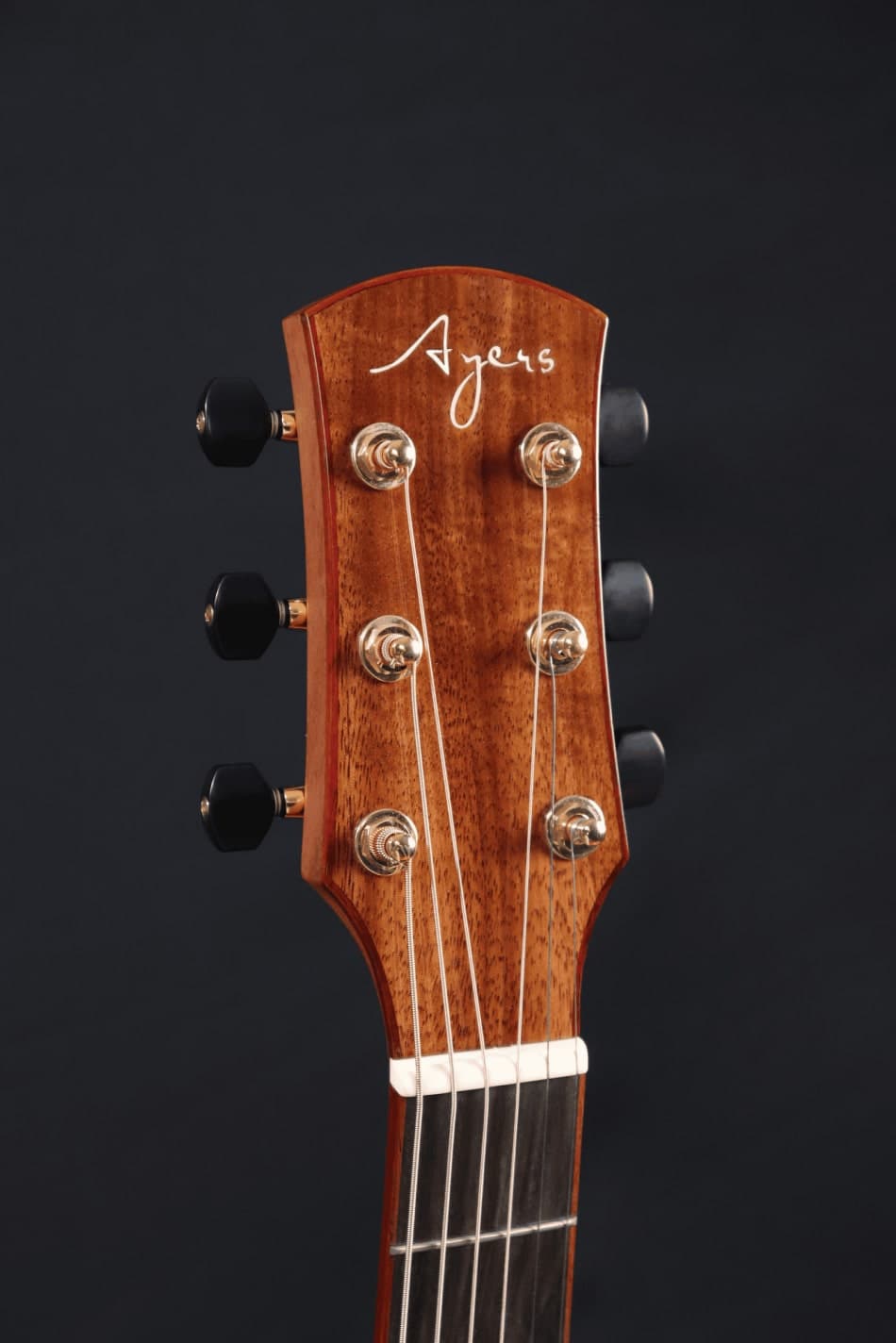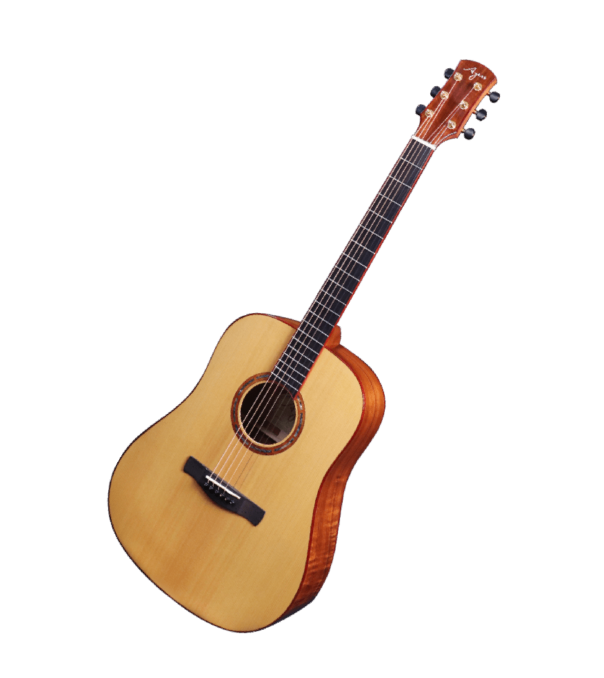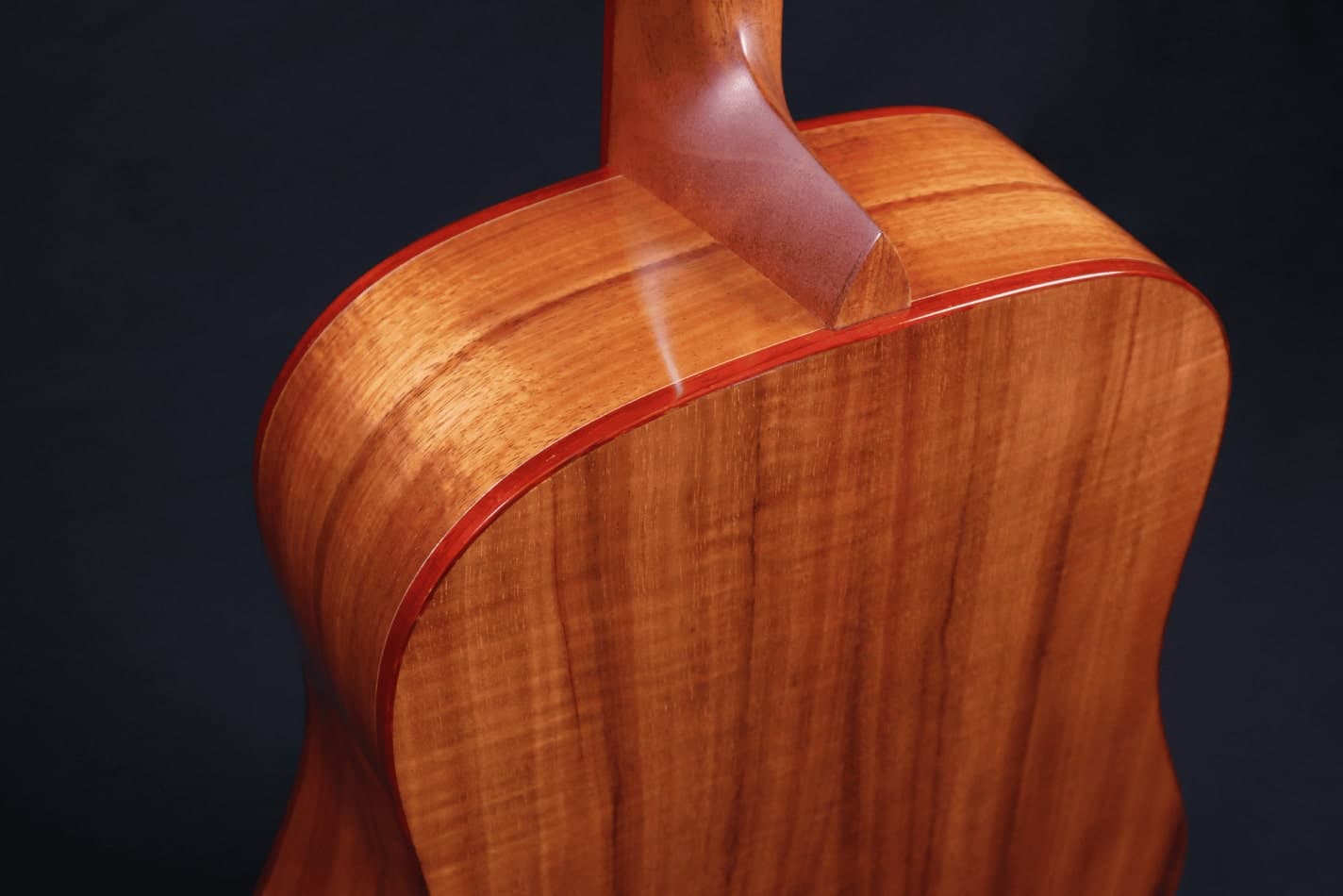 採用西提卡雲杉面板與 4A 級夏威夷相思木側背板,木紋流動立體,色澤金黃溫潤,流露天然韻味與豐富質感。音色靈動明亮,夏威夷相思木增添溫暖共鳴與細膩泛音,層次鮮明且富有延展性。