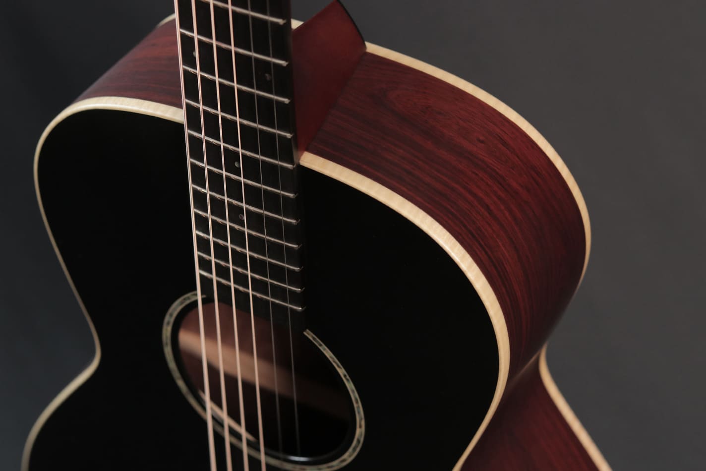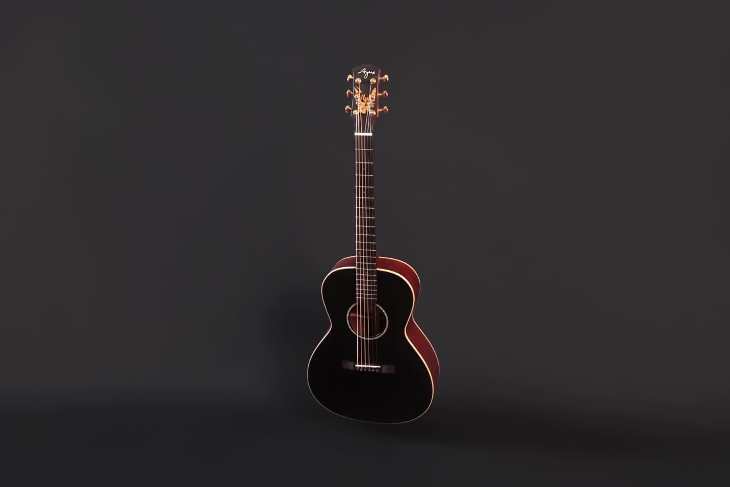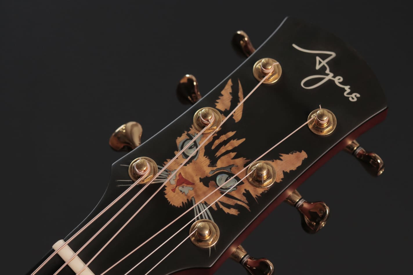 採用烘烤 3A 級阿迪朗達克雲杉面板與印度玫瑰木側背板,霧面黑色噴漆低調深邃,搭配火焰楓木護邊線,琴頭鑲嵌野貓貝雕,銳利眼神隱藏於暗影之中。 音色強勁敏銳,阿迪朗達克雲杉帶來強大動態與通透響應,玫瑰木低頻深沉泛音豐富,如野貓疾行般俐落而富有張力。